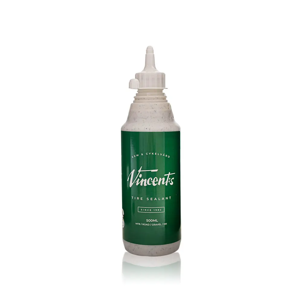 Vincents Tire Sealant är en latexbaserad vätska som är skonsam för fälg, däck och användaren.