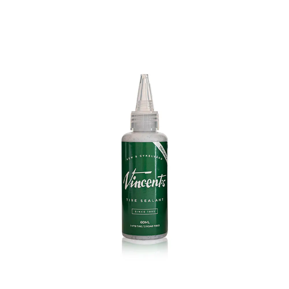 Vincents Tire Sealant är en latexbaserad vätska som är skonsam för fälg, däck och användaren.