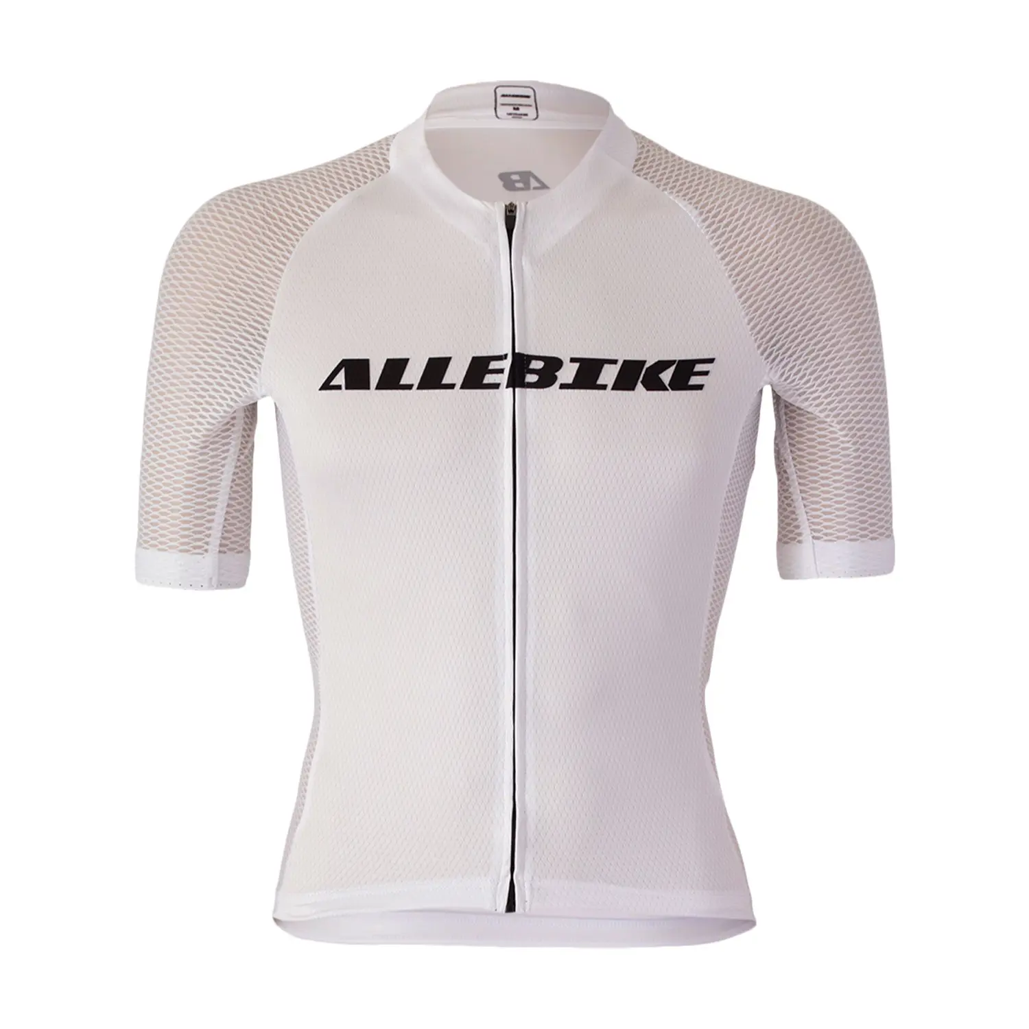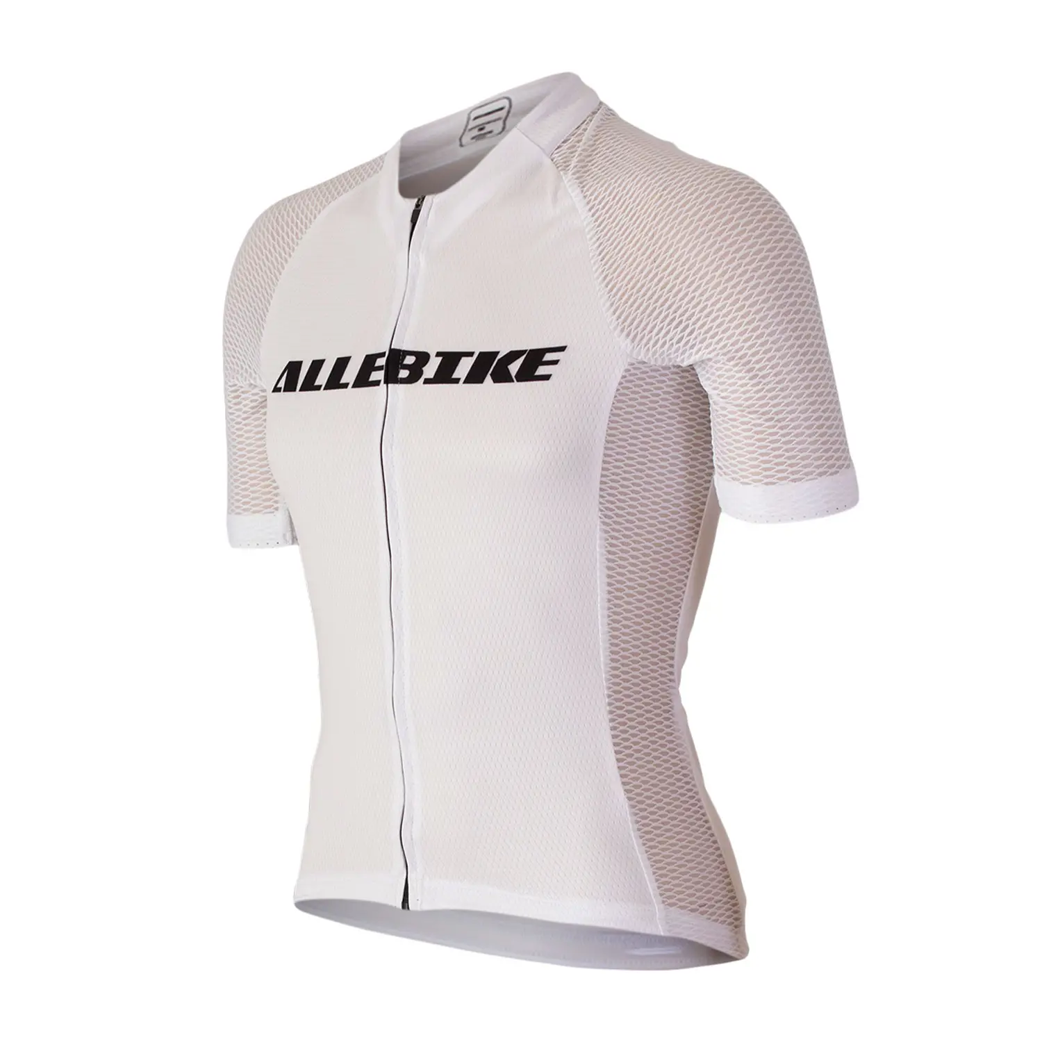 Allebike race jersey - redo att utmana på tävling och träning! Cykeltröjan har en aerodynamisk passform som är optimerad för en framåtlutande position i sadeln. Stilren vit design, med svart Allebike logga och diskret emblem i nacken.